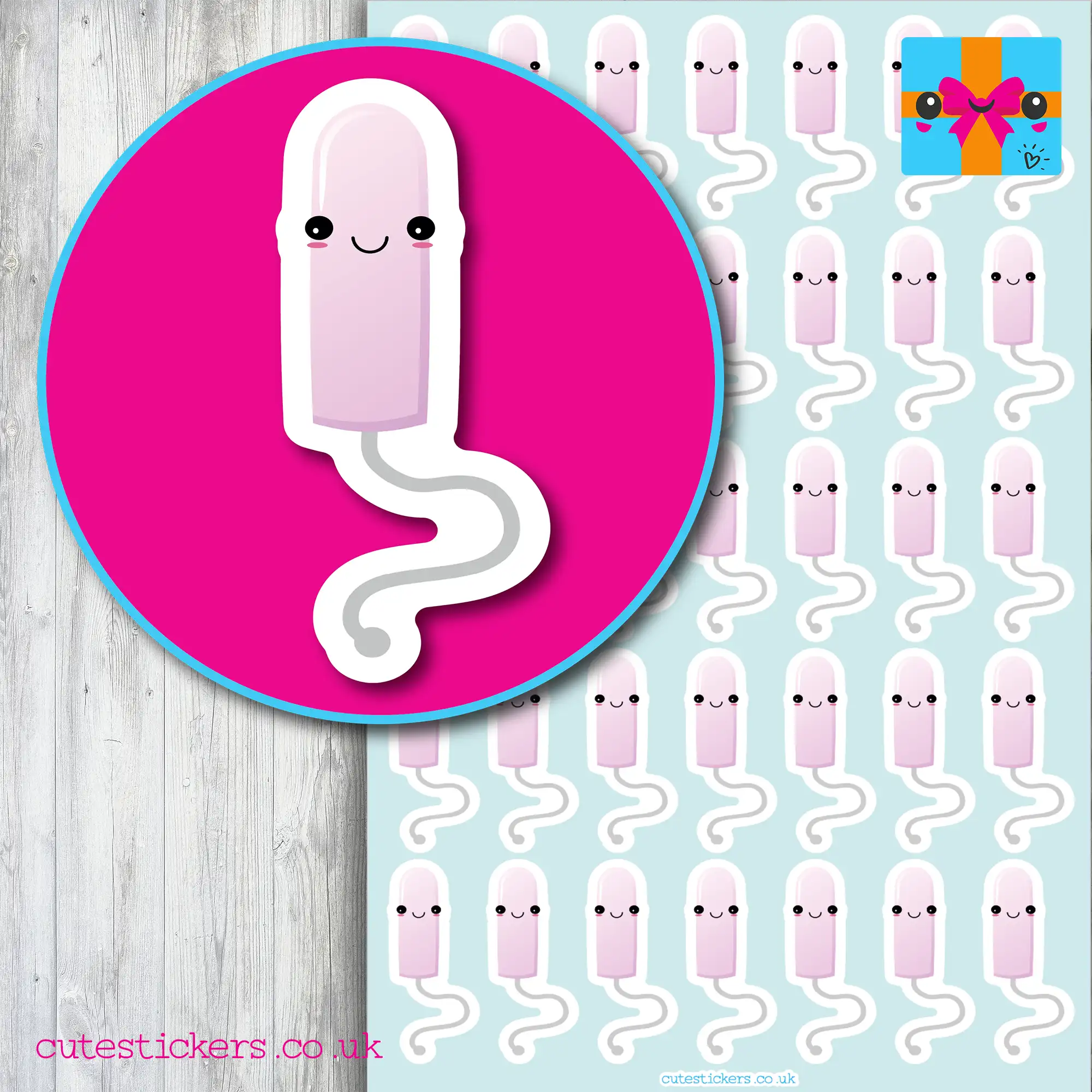 One kiss cut sheet of 35 tampon planner stickers perfect for planners, diaries and calenders. Printed on premium white matte vinyl. Permanent on paper. Removable on smooth surfaces (see below)